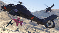 "전투기에 올라타 죽을 때까지 싸우는 데 있어서는 자신이 최고라고 생각할지도 모릅니다. 하지만 공격 헬리콥터 실력은 어떤가요? 제트팩은요? 이 링에 올라서기 전에 만능 재주꾼인지 다시 한번 확인하는 게 좋을 겁니다. 최대 4개의 팀이 로스 산토스의 하늘에서 펼쳐지는 온갖 종류의 공중전을 경험하게 되며, 유일하게 중요한 것은 당신의 최종 합계 점수뿐입니다." — 게임 내 설명.