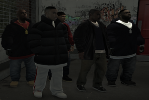 허슬러리버티 시티파이어플라이 프로젝트(브로커)와 노스 홀랜드(알곤퀸), 그리고 알더니 주액터 지역에서 활동하는 아프리카계 미국인 범죄자, 마약상, 갱단원들의 느슨한 연합체를 일컫는 명칭입니다. 이들은 틀:IV, 틀:EFLC에서 작은 비중으로 등장하며, 틀:CW에서는 마약상으로 등장합니다.