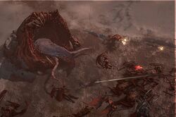 그 후, 두리엘은 자신의 기생적인 존재감을 통해 지옥물결의 본질을 변화시켰습니다.[10] 더 나아가 도살자 악마들의 이름을 딴 도살의 제단이 지옥물결에 나타나기 시작했습니다.[11]