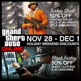 | 뉴스레터 | GTA Online 홀리데이 주말 할인: 터키 슈트 & 블랙 프라이데이 세일 |