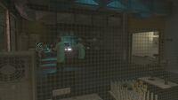 연구소 내부에는 다양한 테스트실과 화학 물질 저장 시설이 있습니다. 시설 외부는 기계와 파이프들로 구성되어 있습니다. 접근 패널로 보호되는 몇 개의 차고와 직원용 주차 공간도 있습니다. 시설 남쪽 끝에서는 노란색 액체가 담긴 웅덩이(증발시키기 위해 배출된 테스트용 액체나 오염된 물로 추정)를 볼 수 있습니다. 파이프와 탱크는 내부에서 외부로 액체를 운송하는 것으로 보입니다.