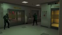 이곳은 또한 온라인 습격 미션인 휴메인 연구소 습격의 핵심 장소이기도 합니다. 4명의 플레이어는 준비 작업인 EMP 전달 미션에서 설치한 EMP를 터뜨려 모든 전력을 차단해야 합니다. 그 후 팀의 절반은 시설로 낙하산을 타고 내려가 정문 차고를 통해 침투하여 보안 요원들을 제압하고 필요한 파일을 확보합니다. 그들은 터널을 통해 수영해서 탈출한 뒤 비행기를 타고 떠납니다. 나머지 팀원들은 발키리 헬기를 조종하여 탈출 지점으로 이동하는 동안 메리웨더의 버자드 공격 헬기들을 격추합니다.