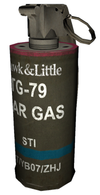 본질적으로는 최루 가스의 비살상 버전이며, 1951년에 개발되어 미군(HD 세계관)이 사용했던 무력화 작용제인 3-퀴누클리디닐 벤질레이트(3-Quinuclidinyl benzilate, NATO 지정 명칭: BZ)를 기반으로 합니다. 외형은 AN M18 연막탄(구체적으로는 "적색 연막" 캔)과 동일합니다. 일반적인 최루 가스와 물리적으로는 비슷하지만, 게임 내에서는 별도의 무기로 취급됩니다.
