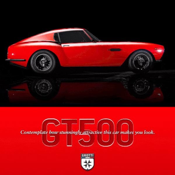 "A지점에서 B지점까지 멀쩡하게 가는 건 그렇게 대단한 일이 아니죠. 엄청난 품격을 뽐내며 가는 게 아니라면 말입니다. 다행히도 그로티 GT500 스포츠 클래식은 이탈리아 자동차 공학의 정수로서, 매혹적인 스타일을 자랑하지만 여러분의 건강과 안전에는 별 관심이 없는 차입니다. 전설적인 모터스포츠에서만 독점 판매하는 그로티 GT500을 지금 바로 만나보세요."