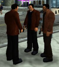 트라이어드의 이름이 알려지지 않은 갱단 리더와 여러 조직원은 토니의 어머니가 그가 트라이어드가 무서워서 리버티 시티를 떠났다고 추측한 후 토니 시프리아니에 의해 살해당했습니다. 신다코 범죄 조직이 포틀랜드에서 축출된 후, 트라이어드는 차이나타운의 나머지 지역으로 세력을 확장하기 시작하면서 레오네 조직의 큰 골칫거리가 되었습니다. 시칠리아 마피아의 마시모 토리니는 이들의 움직임을 예견했으며, 이는 포틀랜드 내의 모든 다른 마피아 영향력을 파괴하려는 그의 계획 중 일부였습니다. 토니는 정보를 얻기 위해 차이나타운을 통과하는 토리니를 미행하도록 파견되었으나, 트라이어드에게 들키고 말았고 탈출 과정에서 그들을 살해했습니다. 트라이어드는 나중에 캘러핸 포인트에 있는 살바토레 레오네의 창고를 폭파하며 보복했습니다.