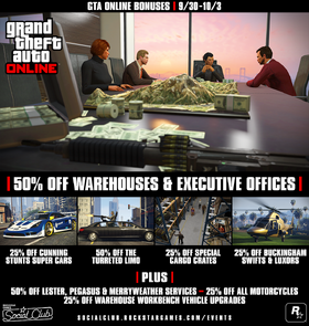 | 뉴스레터 | 이번 주말의 GTA 온라인 보너스: 창고 & 오피스 50% 할인, 옐로우 소용돌이 잠옷 & 스모킹 재킷 잠금 해제, 할인 및 기타 (9월 30일 - 10월 3일) |