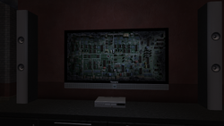 각 텔레비전을 통해 플레이어는 세 개의 텔레비전 네트워크(Weazel, Public Broadcasting Corporation, CNT)를 시청할 수 있습니다. 하지만 채널 번호가 지정되어 있지 않아 원하는 프로그램을 찾는 것은 사실상 우연에 가깝습니다. 대부분의 프로그램은 시간차를 두고 방영됩니다. 예를 들어, 한 채널에서 I'm Rich가 거의 끝날 때쯤 다른 채널에서 막 시작하기도 합니다.